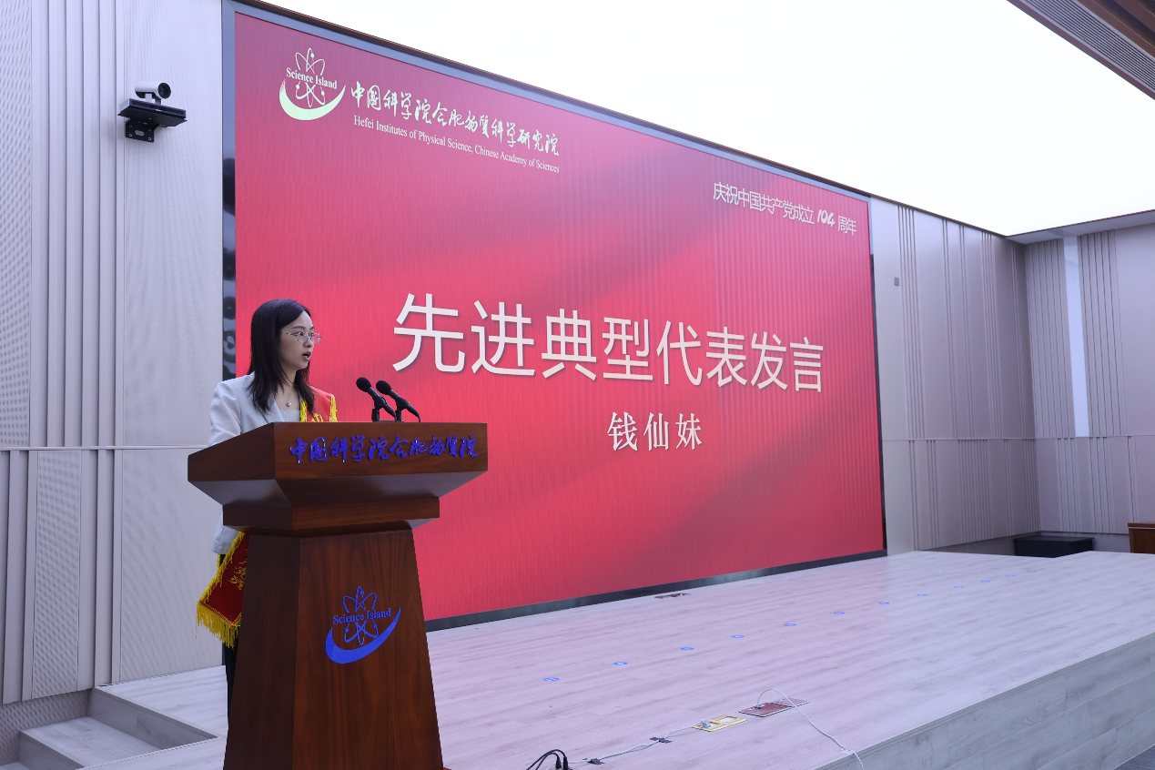 优秀党员代表钱仙妹、先进党支部代表郭斌分别结合科研攻关和支部建设实践作交流发言。