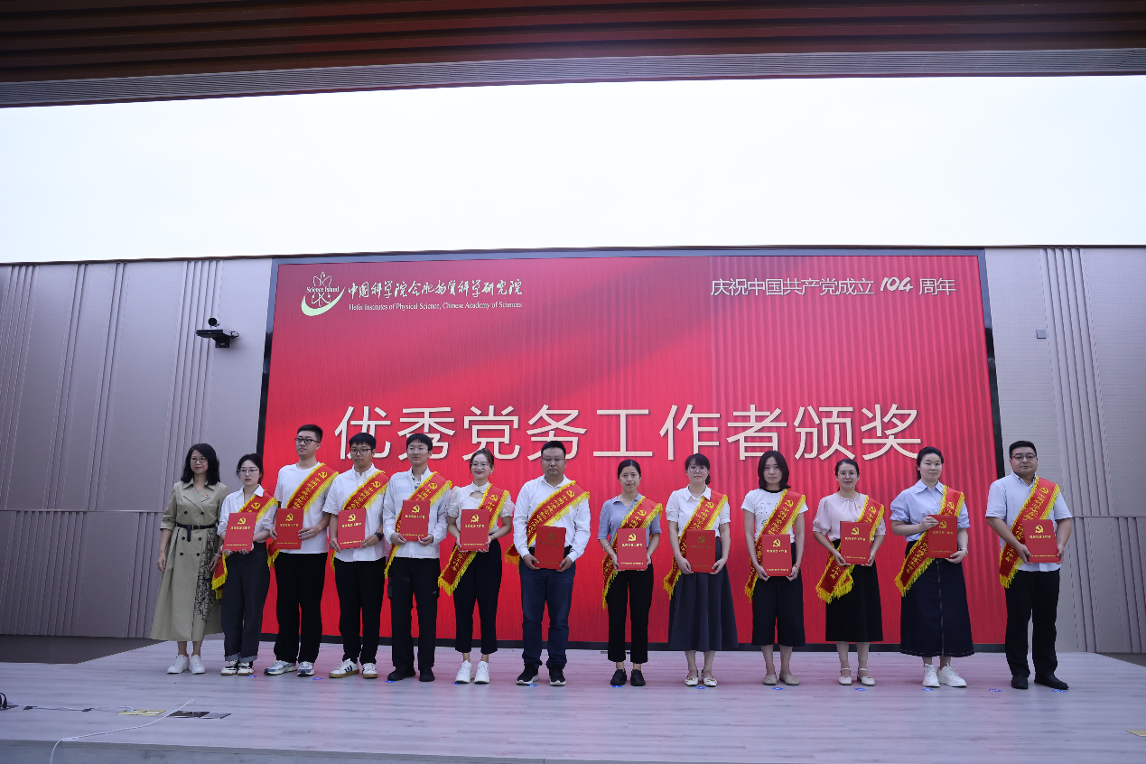7月1日,合肥物质院召开庆祝中国共产党成立104周年暨“两优一先”表彰大会,深入学习贯彻中央八项规定精神,总结科技创新与党建工作成效,部署下一步重点任务。会议组织集中收看学习了中国科学院党组书记、院长侯建国同志关于深入贯彻中央八项规定精神的专题党课报告,并对2024-2025年度合肥物质院优秀共产党员、优秀党务工作者、先进基层党组织进行表彰。合肥物质院党委书记周传忠主持会议,副院长宋云涛宣读表彰决定。