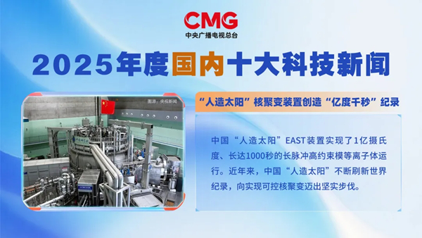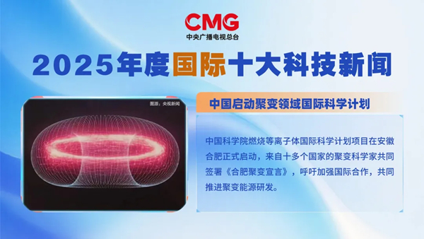 12月24日,中央广播电视总台发布2025年度国内、国际十大科技新闻,科学岛两项进展分别入选。“人造太阳”核聚变装置创造“亿度千秒”纪录入选2025年度国内十大科技新闻。中国启动聚变领域国际科学计划入选2025年度国际十大科技新闻。
