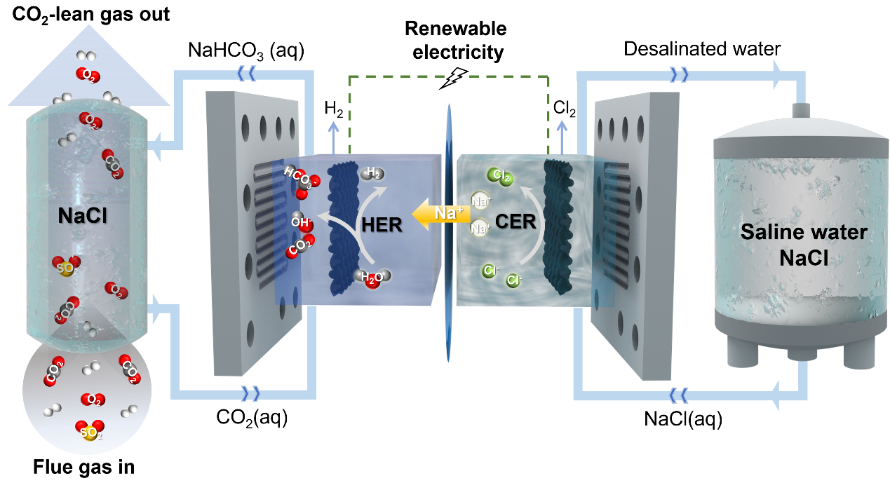 图1. 基于盐水电解的CO2捕集联产NaHCO3系统