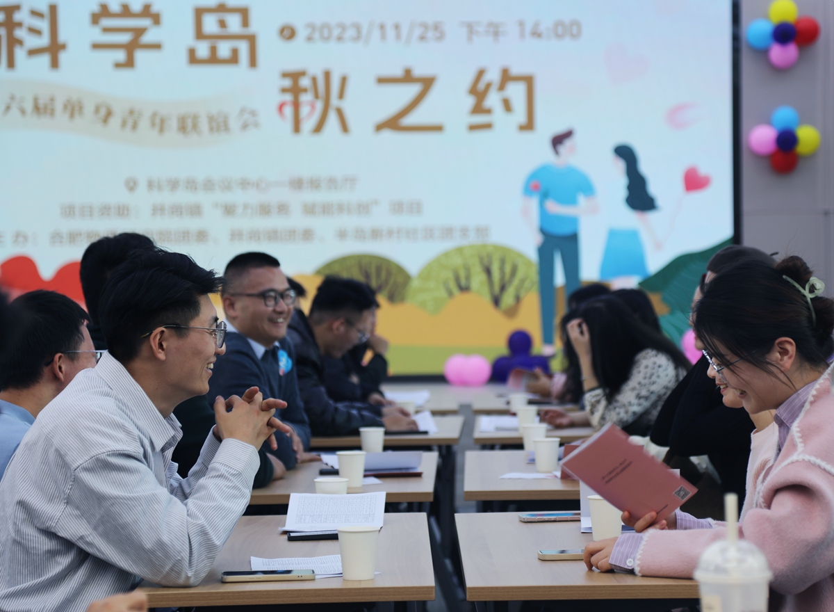 11月25日,由合肥物质院团委和井岗镇团委联合主办的第十六届“科学岛 秋之约”单身青年联谊活动举办。来自合肥物质院和安徽省直、合肥市直等单位的100多名优秀青年,带着对爱情的美好憧憬与向往共赴浪漫之约。