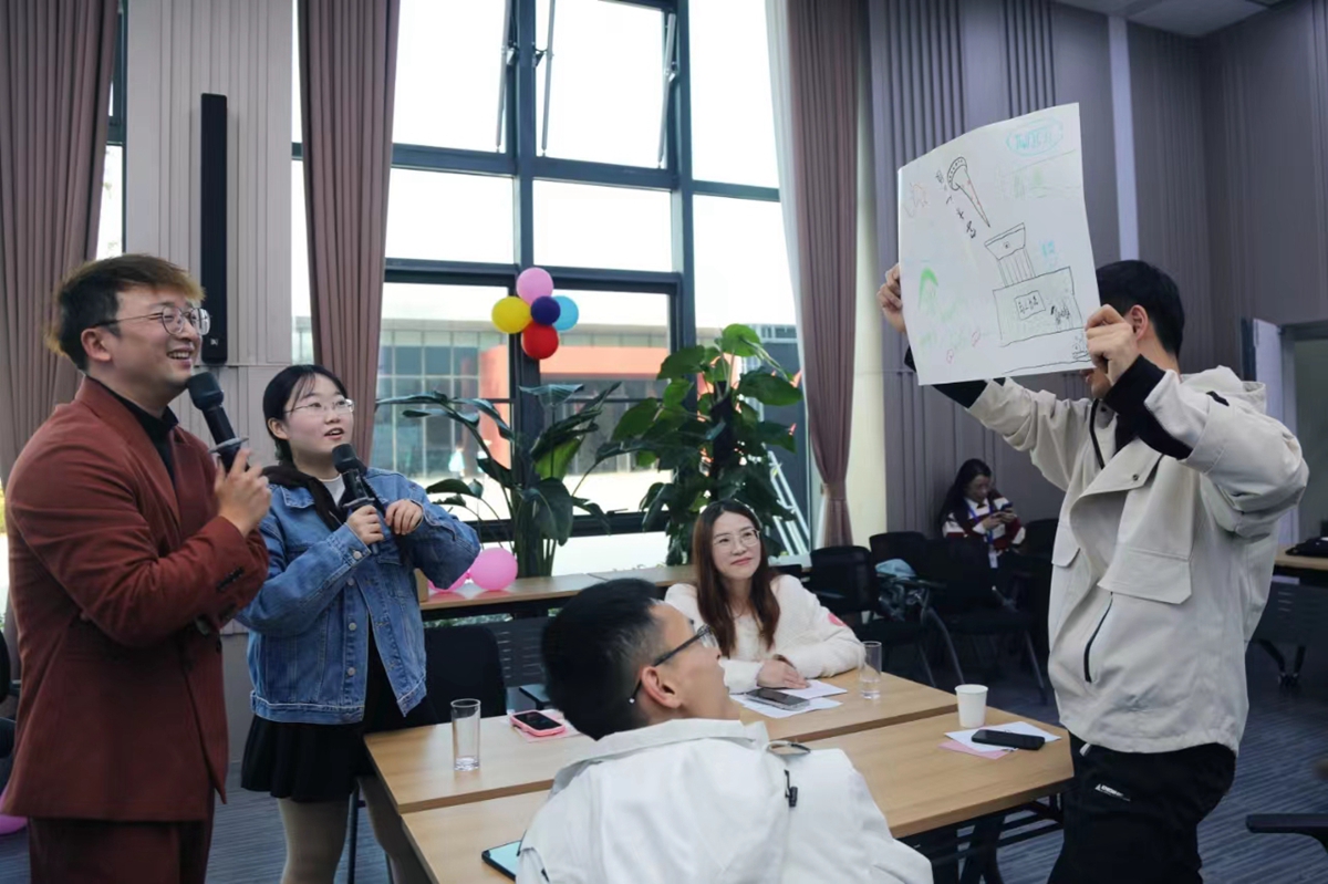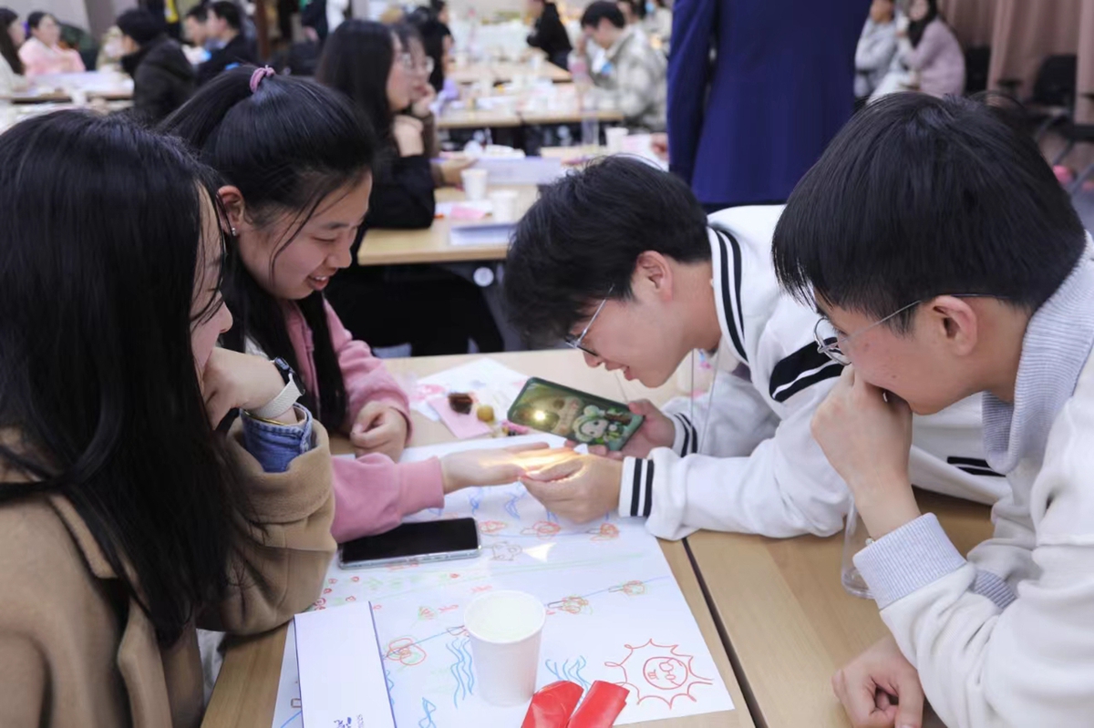 活动中,男女青年在主持人的带领下,通过“心有灵犀、同桌的你、天作之合”等环环相扣的互动环节,放下了初次见面的羞涩和拘谨,用心互动、真诚交流。“秋天的约会”让每个参与者都有机会与心仪的对象单独交流深入了解彼此,在轻松浪漫的氛围中寻找自己的甜蜜之约。“携手帮帮绘”环节中,同桌的四位青年男女共同协作完成一幅有科学岛 秋之约特色的画作,大家分工协作,个人的创意构思、艺术擅长、职业特色都很好地展现了出来。”欢乐游缘会“将活动氛围推向高潮,男女青年通过相同的号码牌组成小组完成指压板、投壶、套圈等游戏,在轻松惬意的氛围中收获友谊、寻觅爱情。随着游戏互动的火热开展,大家逐渐放下“包袱”,敞开心扉,踊跃展示自我,现场掌声、笑声不断,洋溢青春活力。