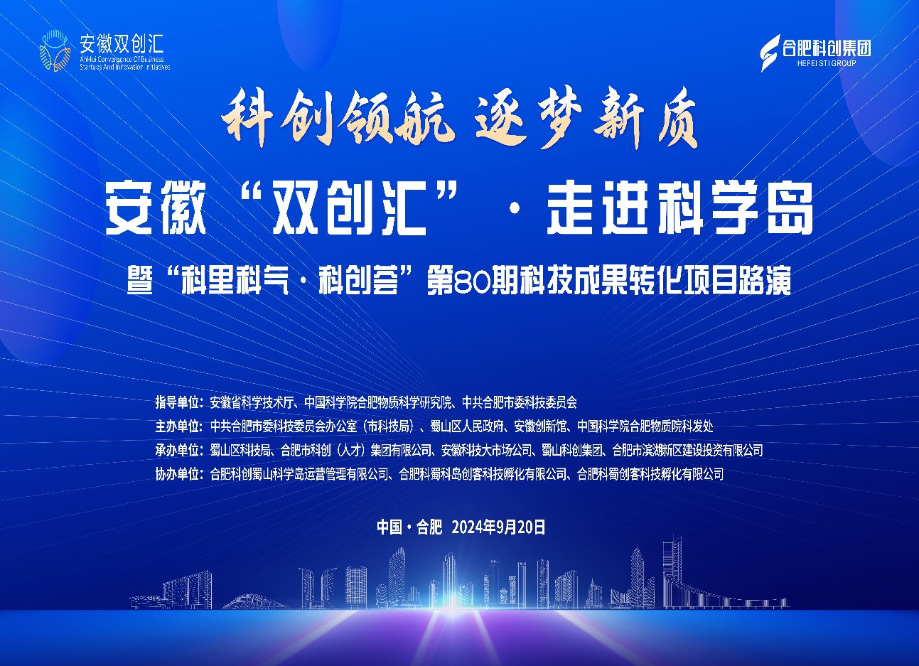 9月20日下午,安徽“双创汇”走进科学岛暨“科里科气•科创荟”第80期科技成果转化项目路演活动在合肥物质院成功举办。省科技厅党组书记吴劲松,合肥物质院院长刘建国、副院长宋云涛,蜀山区委副书记、区长杨森出席会议并参加有关活动。