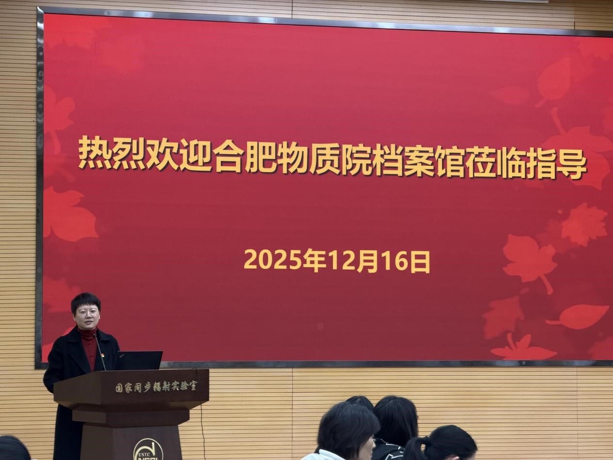 交流会上,档案馆副主任储慧致辞。她介绍,国家同步辐射实验室是我国首个经国家计委批准建立的国家级实验室,在重大基础设施的建设、运行及维改等方面经验深厚。目前,该实验室正承担世界综合性能最先进的低能区第四代光源——合肥先进光源的建设任务,与合肥物质院相关设施同为合肥综合性国家科学中心建设的核心内容。储慧期望与会人员充分交流,汲取先进工作方法,提升自身业务能力。