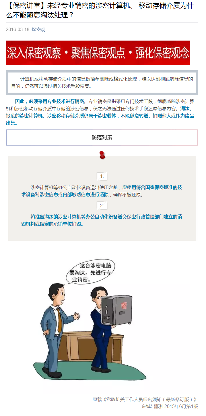 未经专业销密的涉密计算机、 移动存储介质为什么不能随意淘汰
