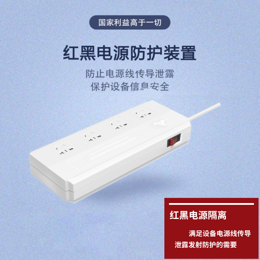 此外,涉密设备在工作时,其产生的高频信号有可能通过市电电源线泄漏,因此涉密计算机、涉密中间机、打印机等设备应当配备红黑电源隔离插座、视频干扰器等,实现电磁防泄露的目的。