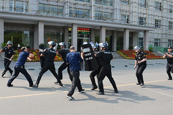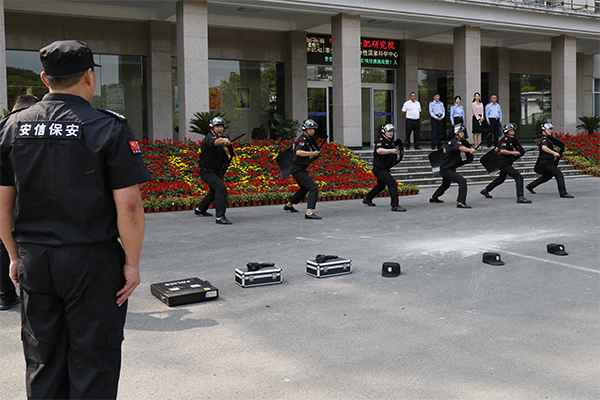 专项安全检查中,督察组对治安、保安公司日常值班、培训及后勤保障等安全管理工作情况进行了仔细询问,对薄弱环节和注意事项进行了强调。反恐演练模拟设置了外来不法分子手持刀具冲击单位关卡意图破坏伤人的场景,预演启动应急预案,开展反恐应急处置,最终制服歹徒的全过程。