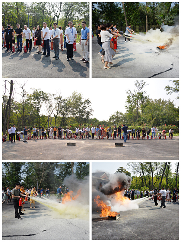 最后,大家在安全保密处主管的讲解和指导下,学习了灭火器的使用方法以及注意事项,分批次地完成了干粉灭火器灭火的演练过程。