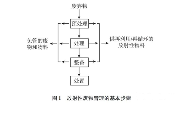 废物的预处理是废物产生后废物管理的初始步骤,例如收集、分拣、化学调节和去污,并且可能包括中间贮存一段时间。这个初始步骤是非常重要的,因为它在许多情况下,为分类处理废物提供了很好的机会,如在工艺过程内作再循环,或者根据其放射性物质存量确定作为非放废物处置,或作为放射性废物进行近地表处置或地质处置。