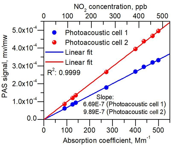 这一研究结果对进一步发展基于光声光谱的气溶胶吸收、NO2在线分析仪器具有重要的应用价值,可应用于大气环境观测领域。研究工作得到了国家自然科学基金、国家重点研发计划项目等支持。