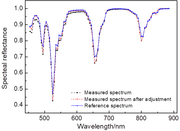 SCS可作为星上辐射标准传递辐射计的重要前提是具有极高的自定标精度,为此,研究团队为其设计了星上太阳漫射板光谱辐射定标组件。首先,通过太阳衰减屏均匀衰减定标漫反射板面接收的光谱辐照度使定标板出射光谱辐亮度与SCS工作观测目标能量匹配,减小定标系数应用误差;然后根据稀土漫反射板特征吸收标准光谱曲线,进行星上光谱定标,确保光谱仪光谱响应函数模型的正确性;最后以稳定的太阳光作为参考光源照明双向反射分布函数(BRDF)已精确测出的定标漫反射板,形成均匀的光谱辐亮度已知的星上参考辐射源,为SCS提供星上定标工作标准,实现其星上绝对辐射定标。