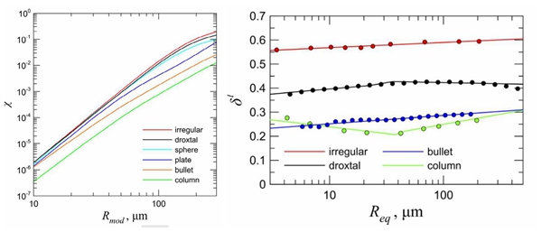 同时测量从同一卷云返回的激光雷达信号和微波雷达信号,是解密卷云微物理特性的一种前瞻性方法。在本项研究中,中俄双方研究人员首次计算、并分析了典型的冰晶形状和冰晶大小分布的激光雷达和微波雷达后向散射信号,结果表明激光雷达-微波雷达比对晶体尺寸最敏感,而激光雷达退偏振比对晶体形状最敏感。研究成果对创建新算法具有重要意义,进而推断出卷云中冰晶的大小和形状。