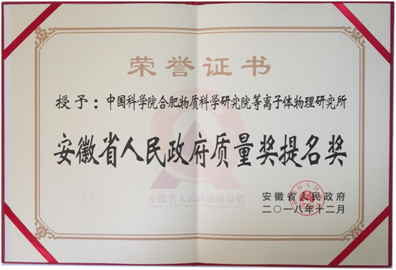 合肥研究院等离子体所获第四届安徽省人民政府质量奖提名奖