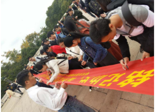 在南京雨花台纪念馆,博物馆工作人员细心讲解,同学们认真观看每一幅图片,每一尊雕像,聆听每一个动人的故事,深切感受到现在的和平生活来之不易。参观结束,同学们来到烈士陵园内,怀着无比凝重的心情,在庄严肃穆的烈士纪念碑前敬献花篮并默哀致敬。面对党旗,同学们庄严的举起右手重温入党誓词,铿锵坚定的誓词回响在烈士陵园上空,更印刻在在场每一位年轻党员的心中。随后,全体同学还进行横幅签名仪式,以表达对革命先烈的崇敬和追思,对时代责任的坚定信念。下午,同学们参观了南京大屠杀遇难同胞纪念馆,重点参观了史料陈列厅、“万人坑”遗址、和平广场,并在和平广场前合影留念。