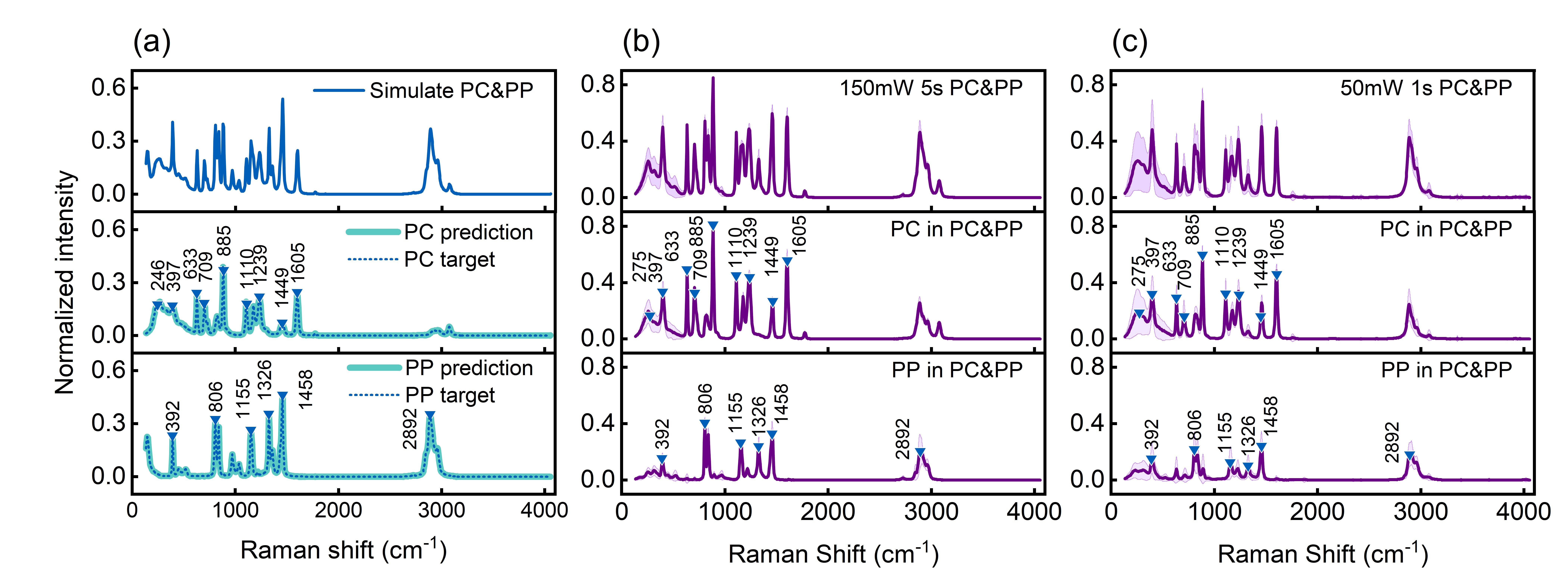 图1.级联神经网络实现混合微塑料拉曼光谱的重构,分类和解混