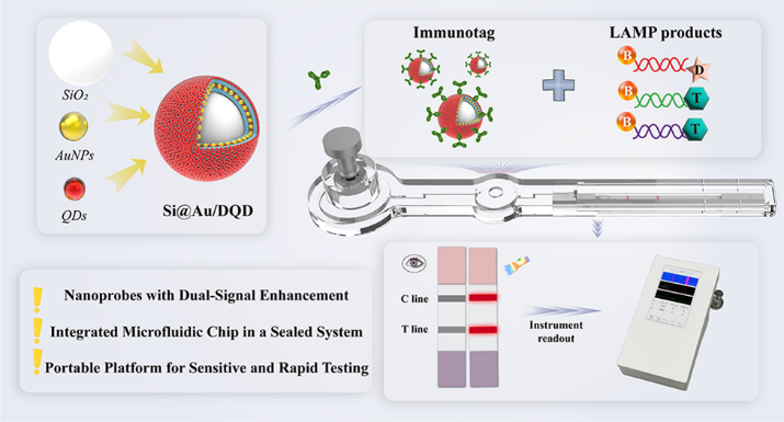 图1.“等温扩增-荧光免疫层析”一体化检测平台