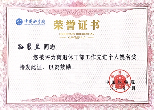 离退休办公室荣获中国科学院离退休干部工作先进集体表彰