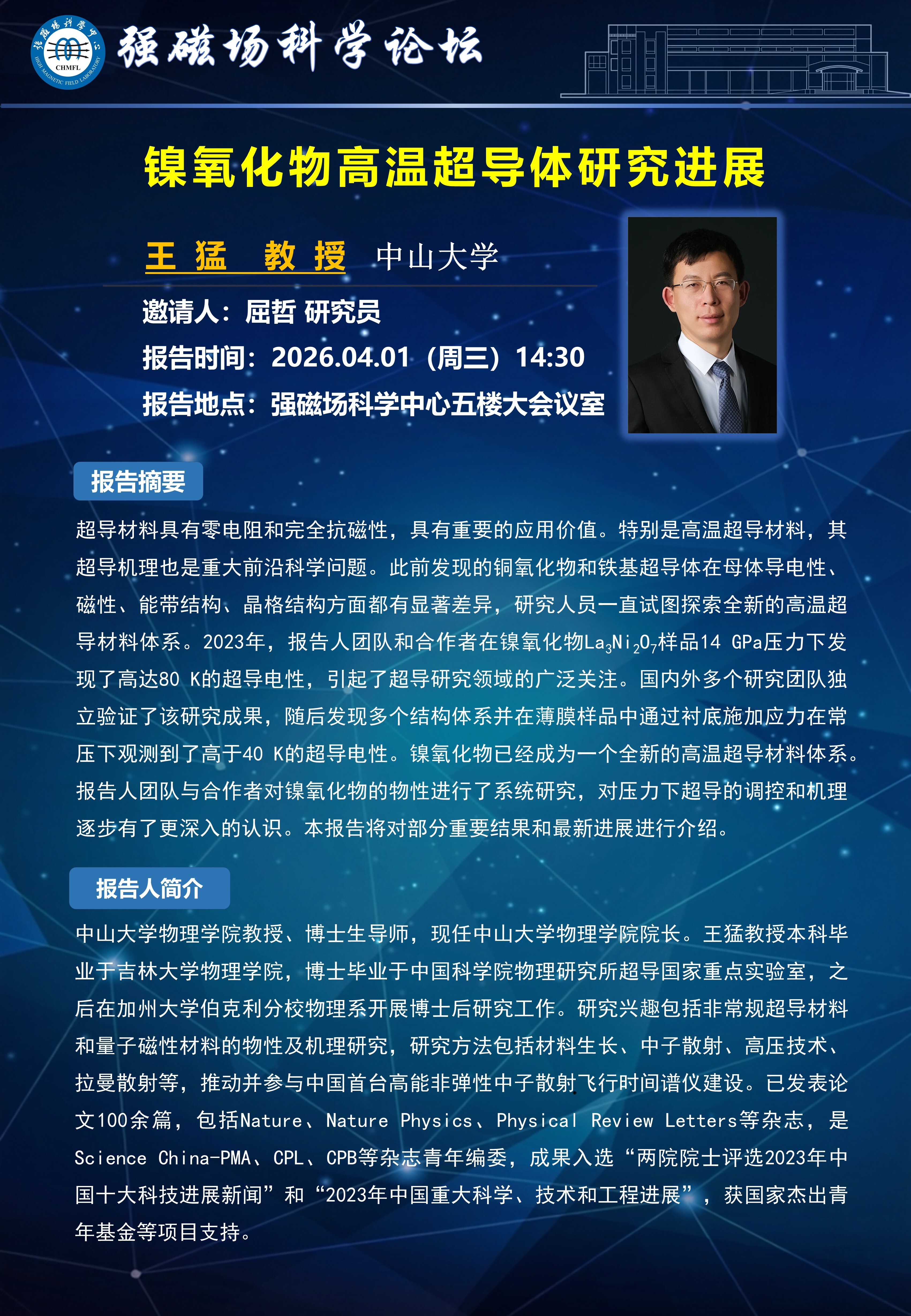 【04.01】学术报告:镍氧化物高温超导体研究进展