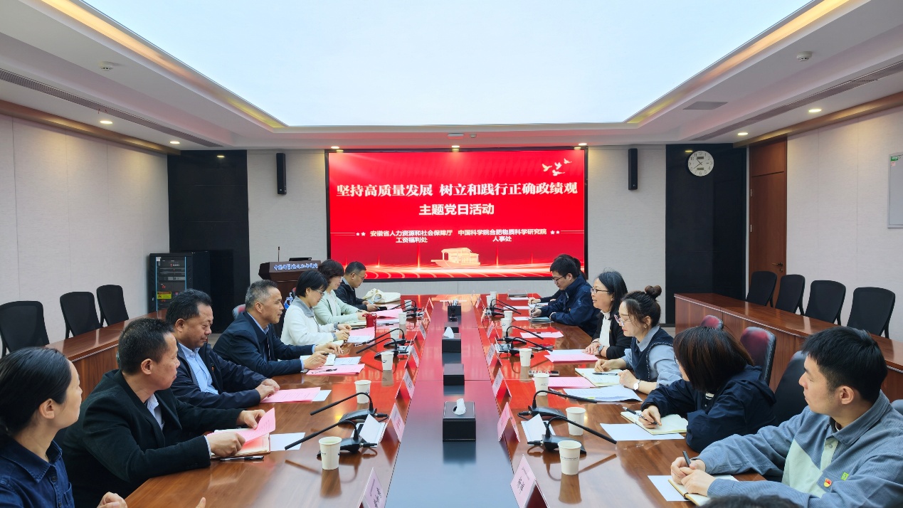 交流阶段,人事处副处长吴婧首先简要介绍了合肥物质院职工的薪酬架构和相关问题;工资福利处副处长郭颖勤介绍了安徽省相关薪酬福利政策和收入分配制度改革的相关内容。双方紧扣习近平总书记关于树立和践行正确政绩观的重要论述,聚焦事业单位收入分配制度改革的指导精神和具体要求,针对人才激励政策、工资福利保障渠道、人员工龄认定等具体问题进行了讨论交流,并就建立健全常态化沟通机制、持续深化业务合作达成共识。