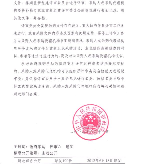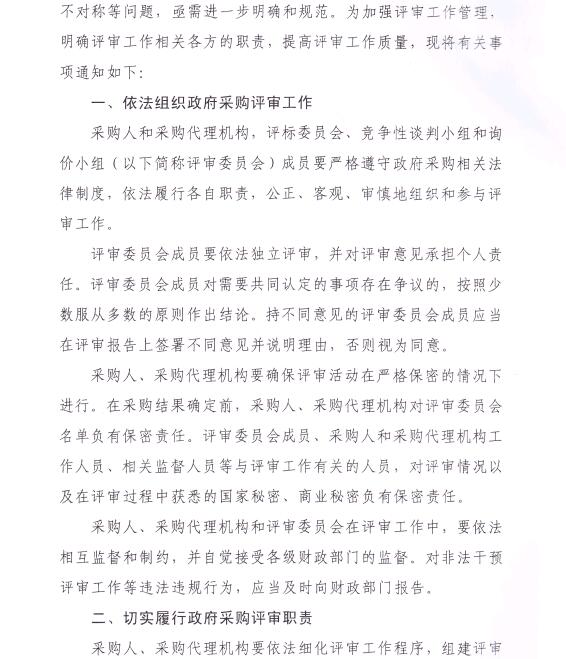 [国家] 财政部关于进一步规范政府采购评审工作有关问题的通知