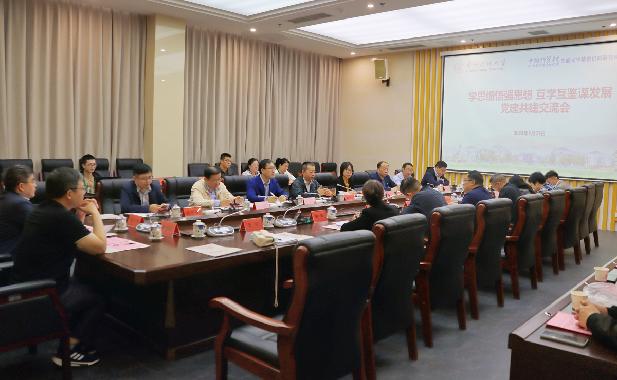 为深入开展学习贯彻习近平新时代中国特色社会主义思想主题教育,积极构建“资源共享、优势互补、互相促进、共同提高”的新时代党建工作格局,5月23日,安光所所长郑小兵、党委书记谢品华带领所党委委员、党支部书记代表前往贵州民族大学开展交流座谈,探索党建共建及人才培养工作,助力服务西部发展。