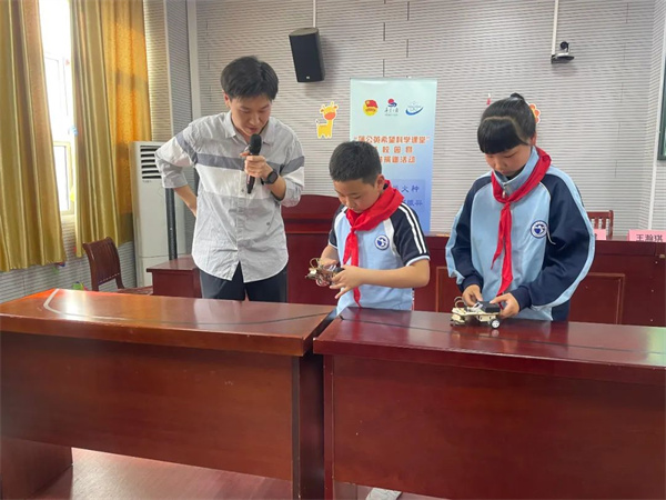活动现场,金寨县吴家店中心小学校长王丽对社会各界的关心致以感谢,并表示科学课堂对进一步提升乡村学生开拓科技视野、激发科学潜能具有重要作用。合肥物质院团委书记贺晓航在发言中提出,金寨县吴家店镇是合肥物质院乡村振兴帮扶区域,希望通过持续的资源下沉与互动实践,让帮扶区域广大青少年感受到科学的魅力。由合肥物质院孵化企业中科普瑞昇注入公益资金的“蒲公英爱心基金”,向学校捐赠了一批公益科技图书,为乡村学生搭建起探索科学的知识桥梁。