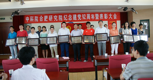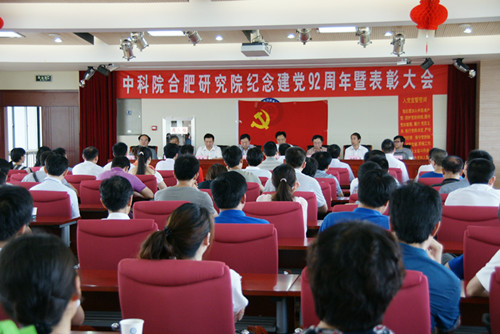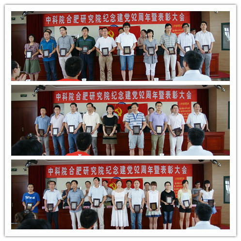 7月1日上午,中科院合肥物质科学研究院在强磁场中心5楼报告厅举行纪念建党九十二周年暨表彰大会,研究院党委书记匡光力作工作报告,到会党委委员为13个先进支部和50个优秀党员颁发奖牌。