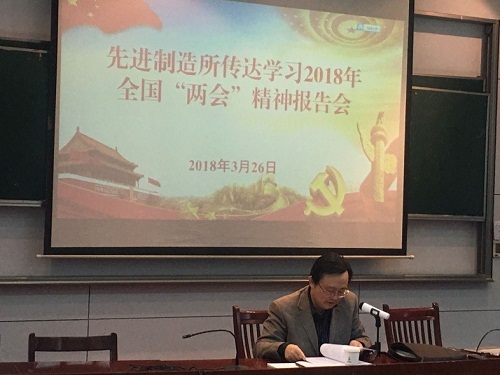3月26日上午,先进制造所召开传达学习2018年全国“两会”精神报告会。全国人大代表、先进制造所所长王容川传达了十三届全国人大一次会议精神和全国政协十三届一次会议精神,会议由副所长孔令成主持,先进制造所全体职工和学生参加会议。