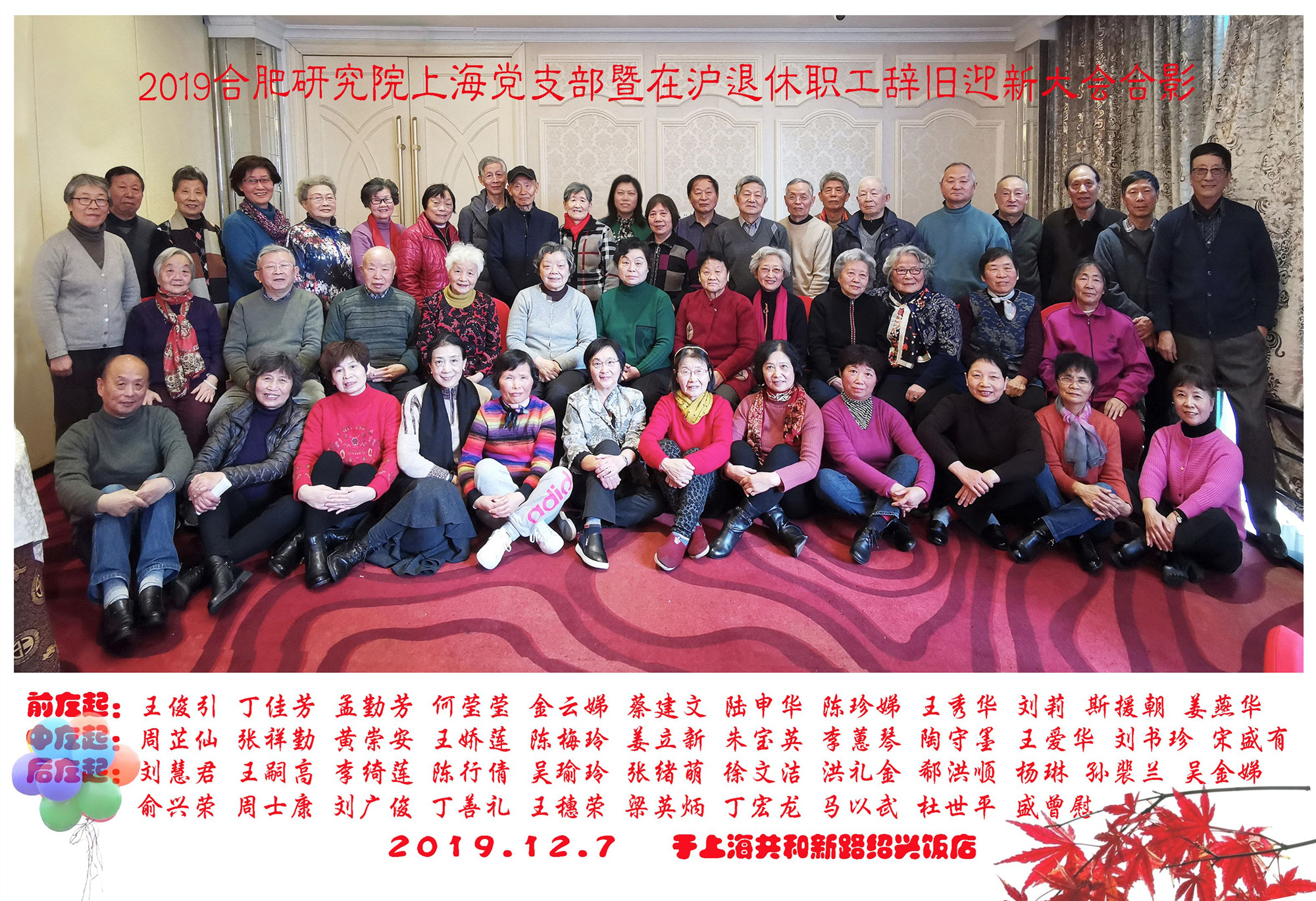 12月7日,合肥研究院上海离退休党支部组织召开了一年一度的辞旧迎新年会。