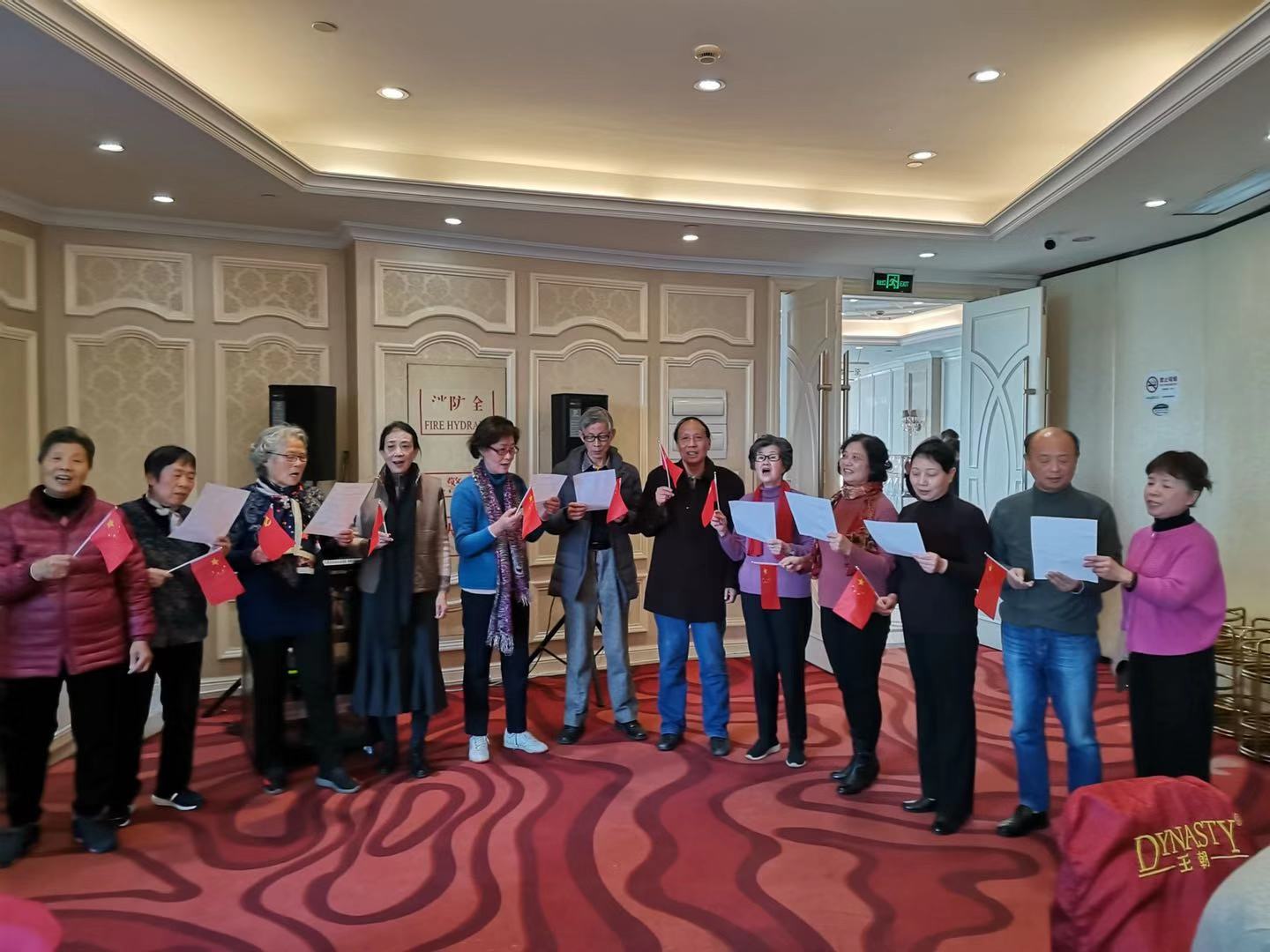 与会的老同志们深深感受到研究院党组织对在沪退休职工的关怀,大家为研究院取得的重大科研成就感到欢欣鼓舞。在支部文体委员李绮莲的带领下,大家挥动鲜红的国旗,全场同声高唱《我和我的祖国》,豪迈欢乐的歌声将全场喜庆的气氛推向高潮。