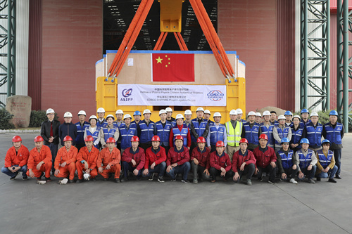 PF6线圈起运前,工作人员与其合影