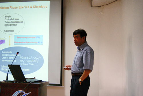 王学斌教授就职于华盛顿州立大学及西北太平洋国家实验室,曾应用自制的电喷雾光电子飞行时间能谱仪,在气相中对溶液化学中的有关过程首次开展光谱研究,系统地开展了涉及大气化学、溶液化学等方面的复杂多价负离子的水合化研究,并观察到从分子体系到宏观体系的转变,提出了相关的理论依据。