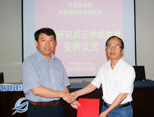 6月15日,合肥研究院院长王英俭在安徽光机所为美国西北太平洋国家实验室王学斌教授颁发了聘书,正式聘请他为合肥研究院特聘研究员。