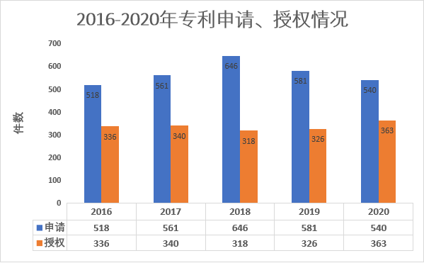 “十三五”期间,申请发明专利1956项,授权专利1281项,比“十二五”分别增长57.95%和66.04%,发明专利数位居全院科研机构前列。