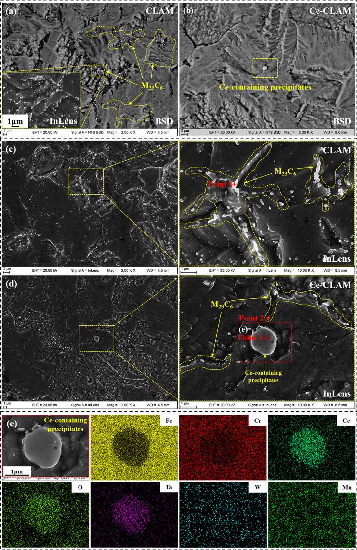 图1 腐蚀前CLAM与Ce-CLAM钢样品微观组织