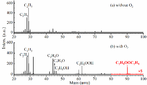 图1. 乙基过氧自由基反应光电离质谱图