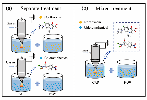 图1 利用低温等离子处理诺氟沙星和氯霉素混合物的示意图