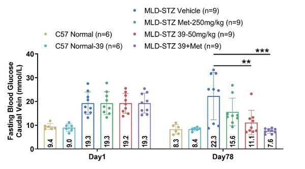 IHMT-MST1-39对II型糖尿病小鼠模型空腹血糖的影响