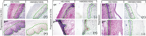 HMGB3对各种病理阶段的病变细胞的标记能力