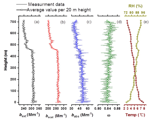 图3. 无人机载腔增强反照率光谱仪应用于多光学参数垂直廓线测量示例