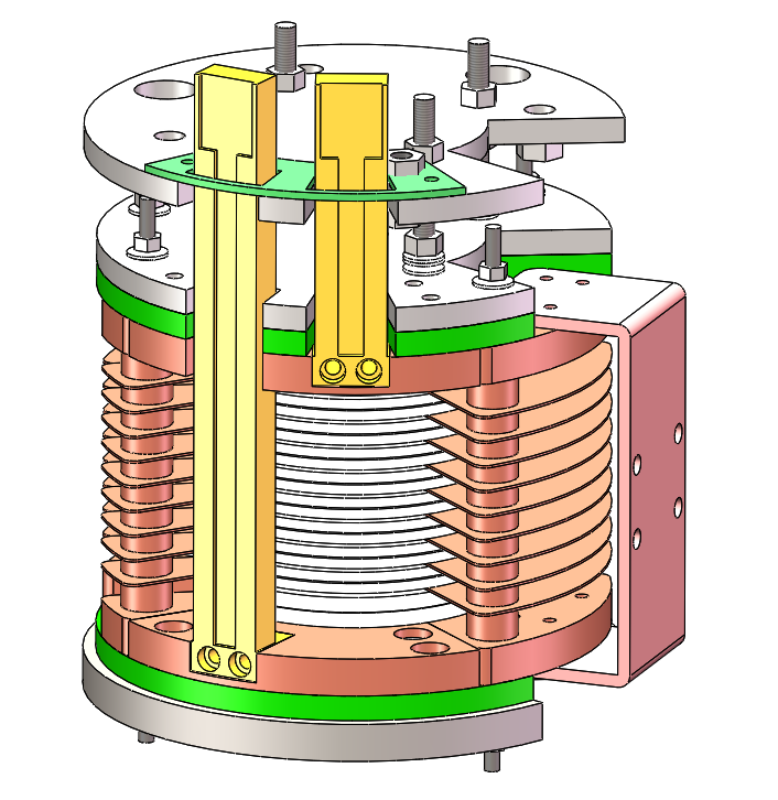该高温超导磁体采用来自于上海超导科技股份有限公司的国产高温超导材料,绕制直径为30mm,采用了多宽度带材的无绝缘双饼绕制技术,提高了磁体的整体工程电流密度和局部电磁安全裕度,并通过加装轴向柔性支撑结构和外缠绕高弹性模量金属带材,有效提高了磁体在低温高场下的整体力学安全裕度。