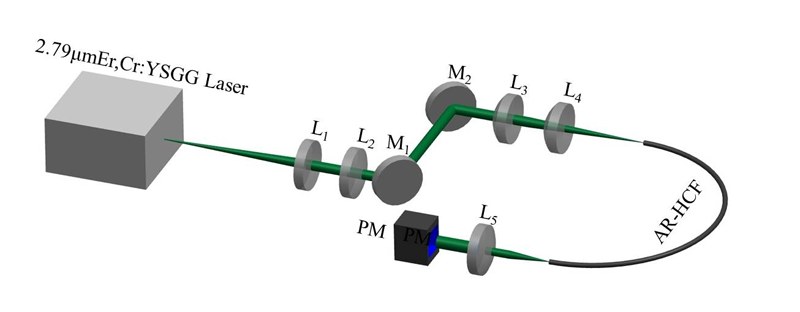 激光医疗仪器通常需要通过一个灵活的导管将其发出的激光传送到患者治疗处,但传统的中红外激光医疗仪器大多采用的是导光臂传输激光。然而,传统的导光臂传输激光方式存在诸多问题,如系统结构复杂、传输效率低、不够灵活等。采用光纤传输可解决上述问题,但实芯光纤的材料在中红外波段的激光损伤阈值较低,无法满足3 m波段铒激光医疗器械高能量密度的导光需求。所以,研究团队设计研究一种结构简单、耦合传输效率高、损伤阈值大且可柔性传输的AR-HCF替代导光臂传输激光能量。