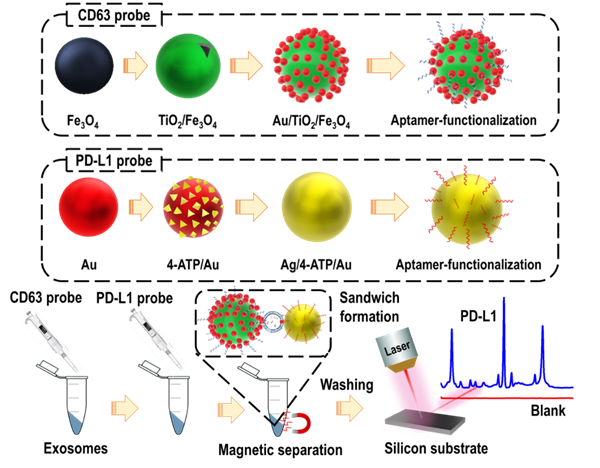 使用“三明治”SERS探针检测循环外泌体PD-L1的示意图