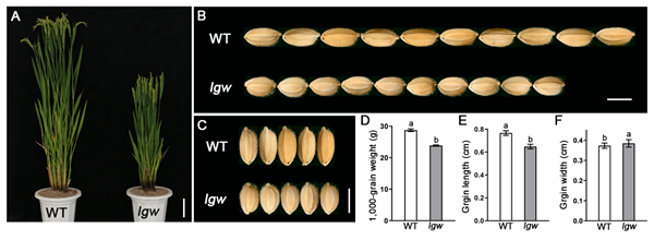 水稻脆秆性状有利于秸秆还田和高效利用。BC12是一个典型的脆秆基因,突变后会导致脆秆表型,但是lgw突变体秸秆脆性不明显,推测LGW/BC12在调控细胞壁合成和籽粒大小依赖于其不同的生物学功能。因此,该研究进一步揭示了LGW/BC12一因多效的分子机制,为“谷草兼用”水稻品种培育提供重要的理论支撑。