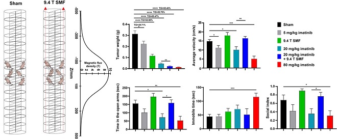 9.4 T稳态强磁场可以增强伊马替尼抗肿瘤效果并显著减轻药物导致的毒副作用及抑郁行为