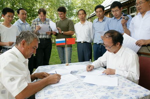 在热烈友好的气氛中,王英俭院长和马特延科所长分别代表双方签署了中科院合肥研究院安光所与俄罗斯科学院西伯利亚分院大气光学研究所的科技合作协议。根据合作协议,双方将在交流科技人员、开展合作研究、共享信息资源、举办双边学术研讨会等多方面开展实质性合作。在此协议的基础上,安光所饶瑞中副所长还与马特延科所长达成了俄罗斯大气光学研究所和中科院安徽光机所2009-2010年度具体合作计划。
