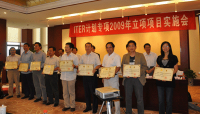 2009年9月29日下午,由科技部主办、中科院等离子体所协办的ITER计划专项国内配套研究2009年立项项目实施启动会在合肥翡翠湖迎宾馆召开。大会正式启动了ITER计划专项国内配套研究2009年的立项项目——聚变实验堆设计研究、先进等离子体控制方法与实验研究、液态增殖剂TBM设计和技术可行性研究、电子回旋二次谐波共振加热技术研究等9项。其中前3个项目的承担单位均为等离子体所。