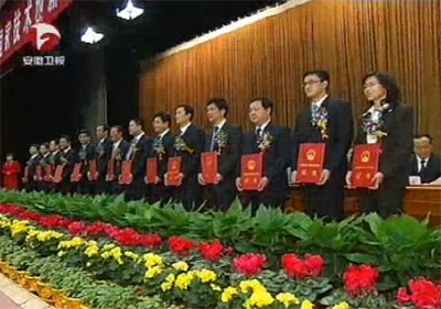 1月23日上午,安徽省委、省政府在合肥召开国家技术创新工程安徽省试点工作动员大会。会上向荣获2009年度安徽科学技术奖和安徽省创新型企业奖的企业、单位和个人进行了颁奖表彰。合肥研究院等离子体所吴宜灿等人完成的“反应堆中子学方法与包层新概念研究”成果获得了自然科学一等奖,智能所孙怡宁等人完成的“体育竞技项目综合测试与训练指导系统”成果获得了科技进步一等奖。