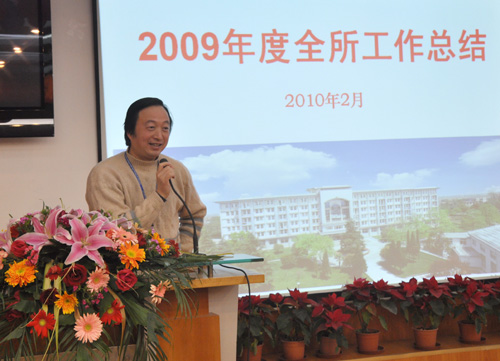 傅鹏宣布了2009年度全所考核优秀人员名单、科研课题和职能部门考核成绩、安全先进集体和个人名单。