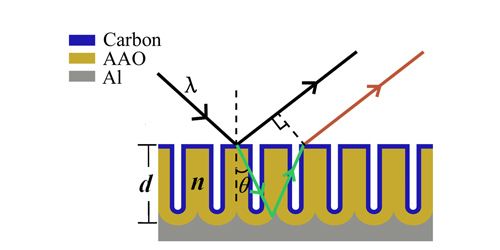 引起碳管@多孔氧化铝复合薄膜颜色变化的光干涉示意图